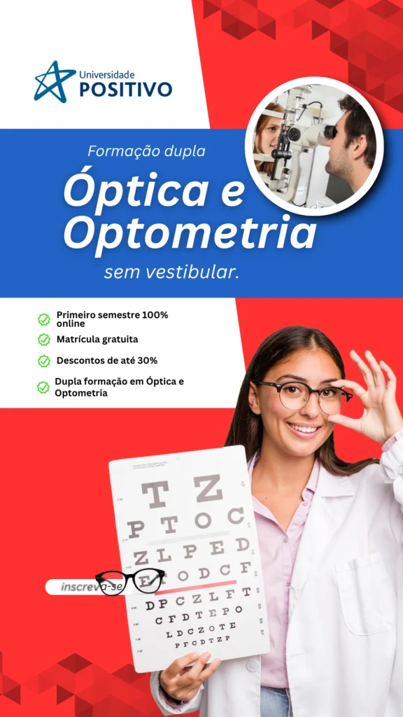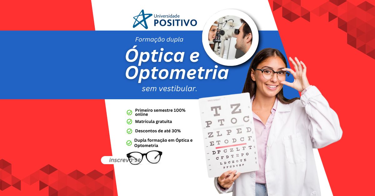 Imagine-se dominando técnicas para transformar a visão das pessoas! No curso de Óptica e Optometria, você aprenderá a diagnosticar problemas visuais, prescrever lentes e atuar na prevenção de doenças oculares. Com aulas práticas desde o primeiro semestre, desenvolverá habilidades para identificar miopia, astigmatismo, alterações na visão de cores e muito mais.
